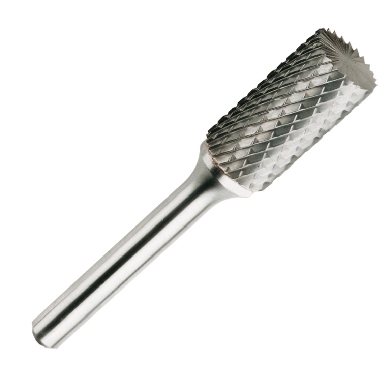 Fresa cilíndrica con corte para la aplicación en fresadora de aire comprimido. Garantiza una superficie lisa y a la vez un alto rendimiento de fresado. Adecuada para fresar en poco tiempo materiales duros. Diámetro cabeza: 8 mm; Diámetro Vástago: 6 mm; Longitud cabeza: 19 mm.