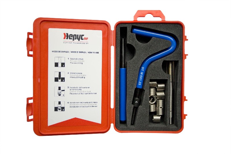Kit reparador de roscas métrica 8x1,00. Incluye 10 insertos roscados 1,5D, 1 macho de 8,30 e insertador y rompe arrastre nº 11.